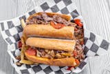 Red or white pizza topped with chopped Philly rib eye steak grilled onions, green peppers & American cheese.