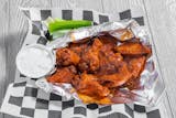 Red or white pizza topped with grilled chicken, hot sauce and blue cheese.